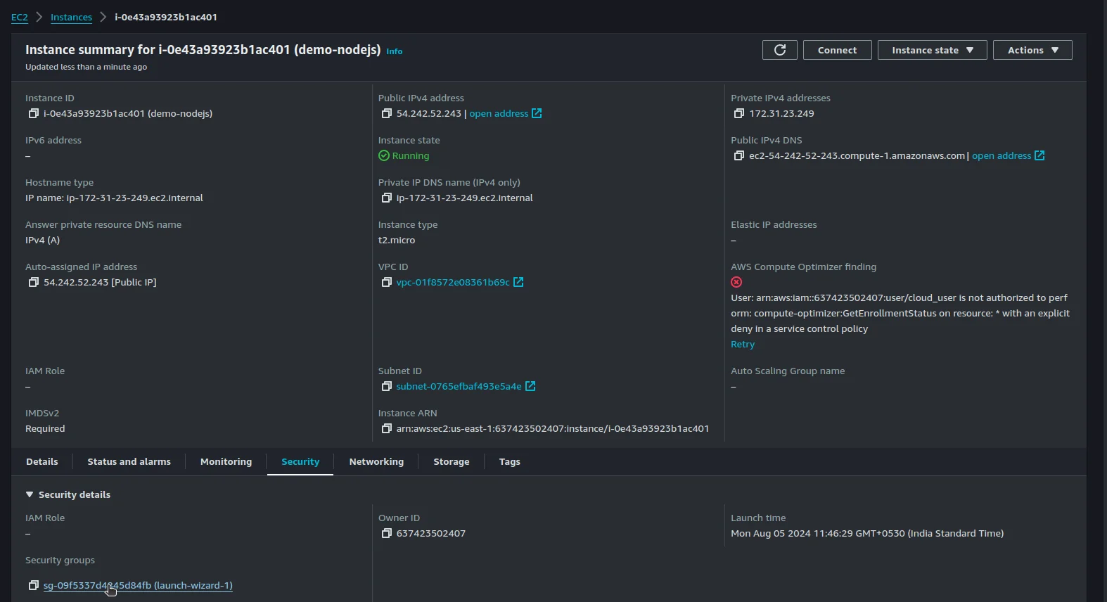 Now we have deployed the app, but it won't be accessible on the internet yet. To make it accessible, let's configure the necessary security groups and open the required ports. This will allow external traffic to reach our application.