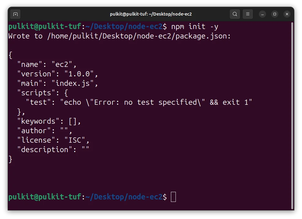 For this walkthrough, I will be deploying a simple Express hello-world application on EC2. Let's start by initialize a simple express app